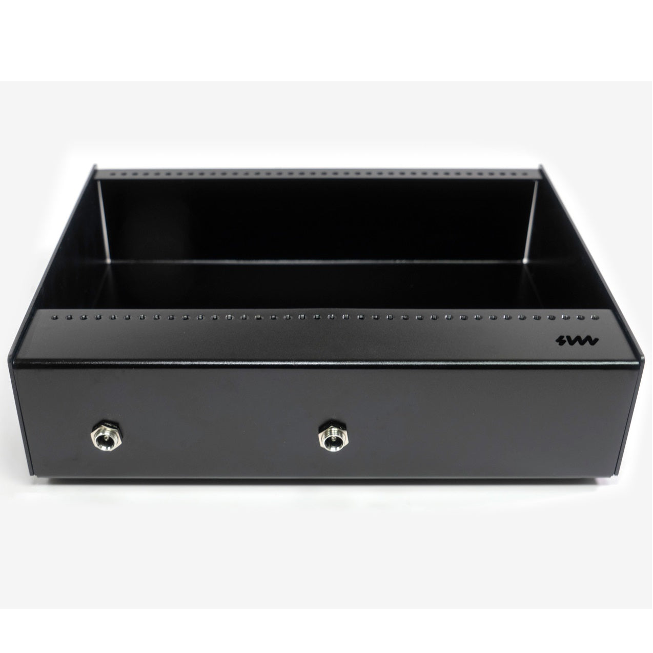 Made from 100% anodized aluminum, Pods are light, tough and perfect for on-the-go set ups. The power supply can handle up to 1.4A of +12V, which is plenty of juice for even the most modern digital modules. (Or if you prefer to DIY your power supply, Pods are also available unpowered)