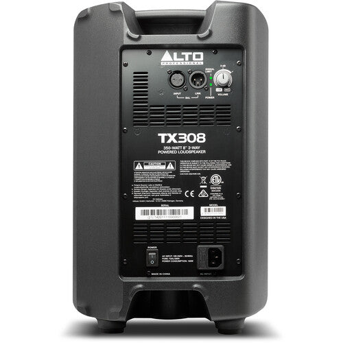 Audio engineers and rental houses looking for a portable, versatile, and simple-to-use PA will be impressed with the 8" Alto Professional TX308, a 350W powered PA speaker that functions as a main PA in a wide variety of positions and with a pair, can cover an audience up to 200. The simple interface helps working presenters, musicians, instructors, performers, and A/V providers get powerful, clean, and clear sound easily.