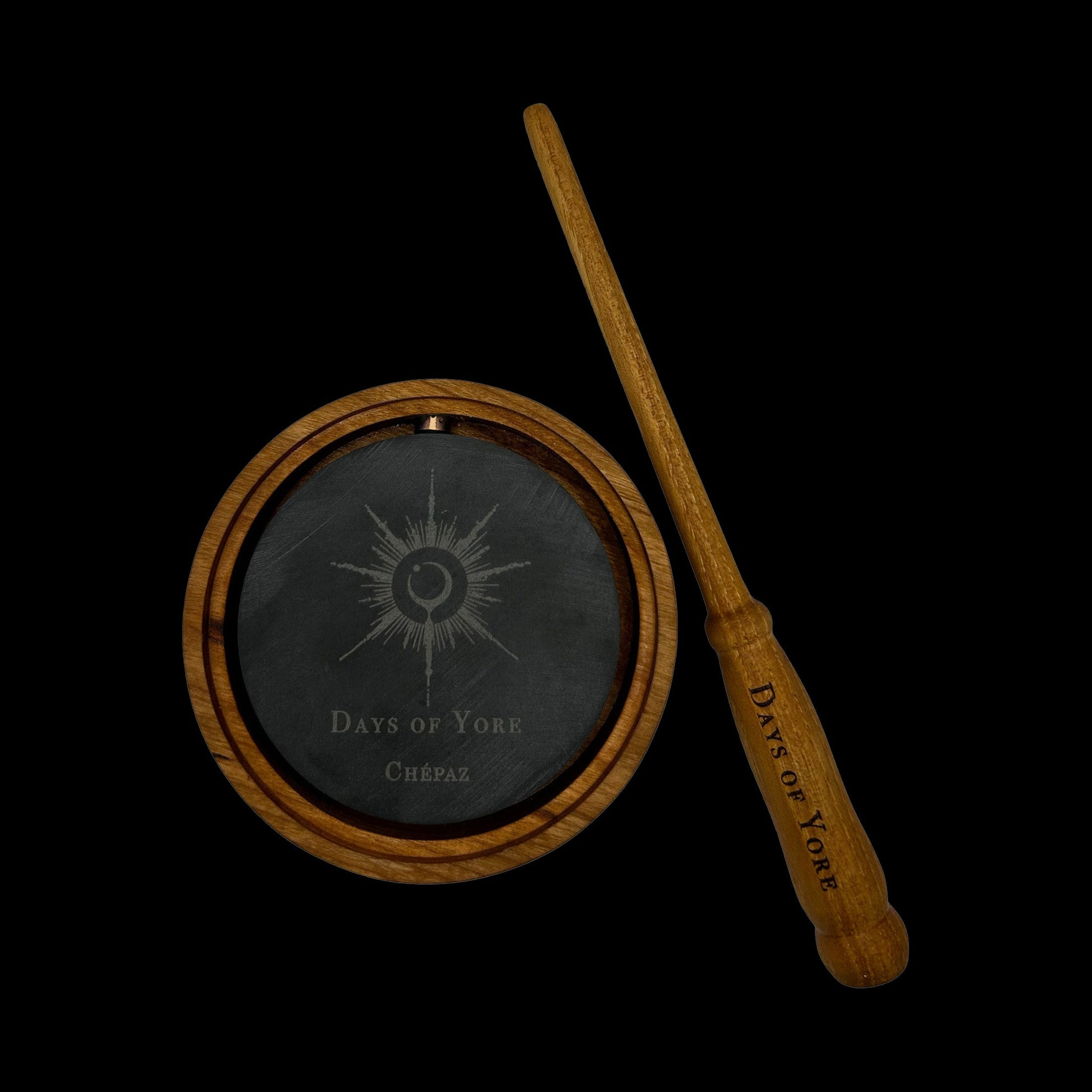 - Solid wood base and slate drum based on turkey hunting call design