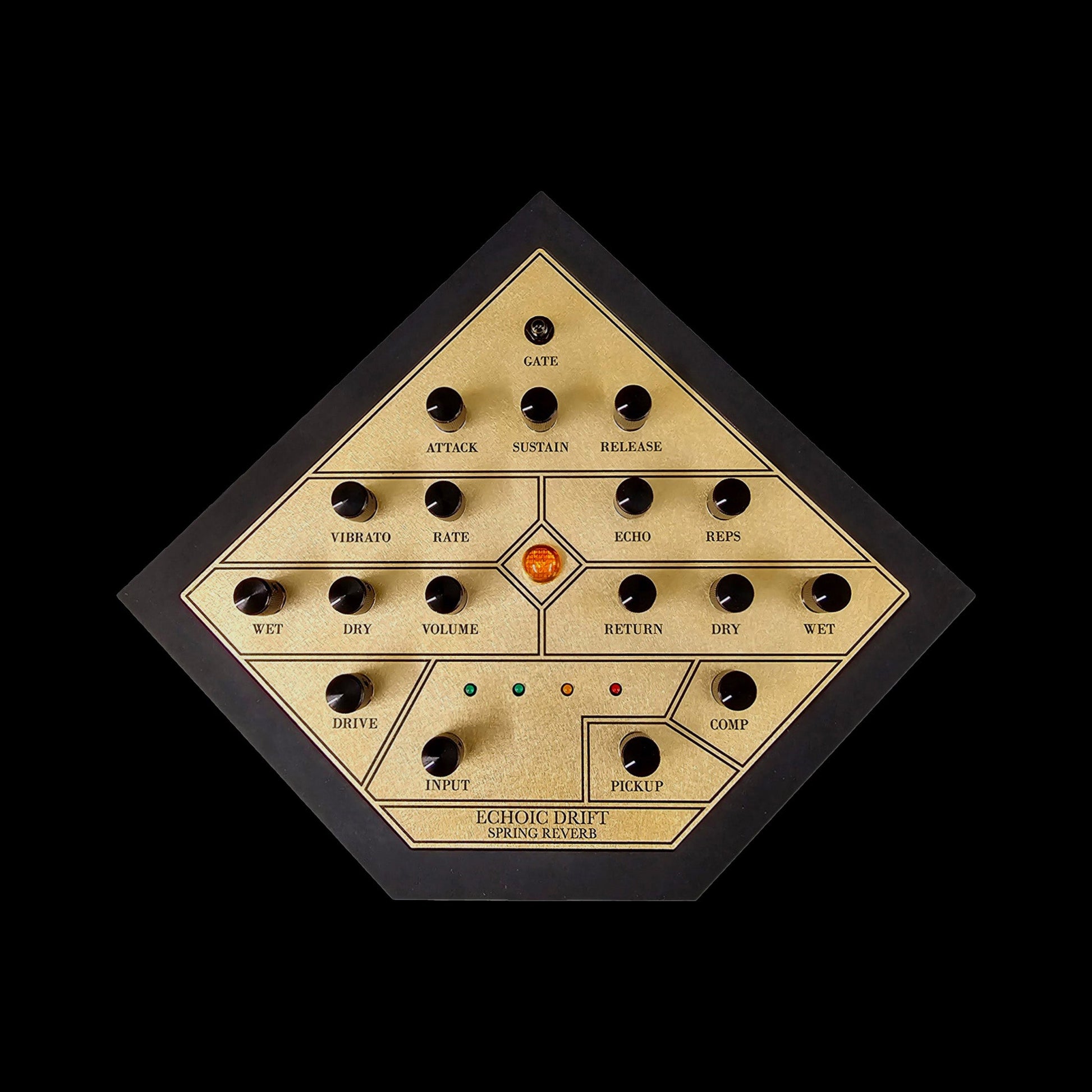 In addition to the lovingly crafted and custom-designed spring tank, Echoic Drift offers uncompromising control over the lush reverberation the tank provides. With controls for wet and dry signal, input volume, pickup gain and drive, reverb compression, and output volume, it's easy to find any sort of reverb sound you need, from subtle depth to cavernous soundscapes. Create dynamic gated reverbs for impactful moments, with an adjustable three-stage envelope triggered by your input signal. Warble and bend tones with the vibrato rate and depth control, and add haunting echoes with the onboard delay effect. With its unconventionally attractive and nuanced design, Days of Yore's Echoic Drift offers a spring reverb effect that goes above and beyond to bathe signals in all sorts of analog beauty, bringing ear-catching reverb to any audio source.