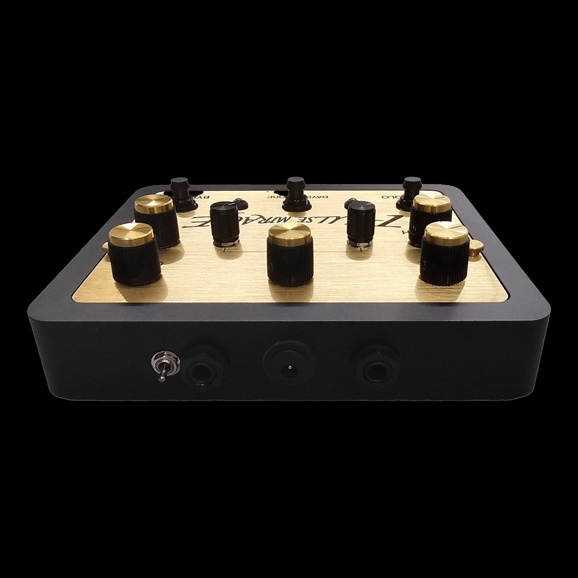 Quench your thirst for imaginative tones with the Pulse Mirage from Days of Yore, a dual oscillator fuzz pedal that delivers a vast range of tonal destruction from rich saturation to full tonal chaos. Whether you are dialing in subtle harmonic enhancement or summoning interdimensional flanging and wah sweeps from the interaction of Pulse Mirage's fuzz, tremolo, and oscillator circuits, this unique effect is sure to bring new musical possibilities to any pedalboard.