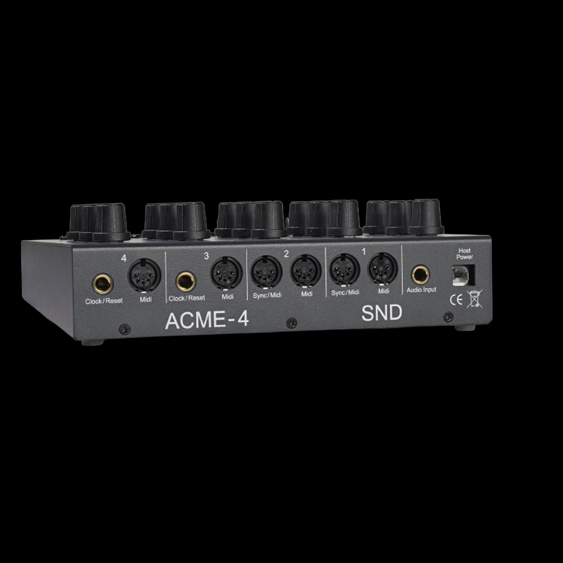 | - | Like all SND products, the ACME-4 has been designed with great attention to detail. The 32-bit risc-processor ensures lightning-fast reaction. High-grade components (gold-plated jacks, switches, and push-buttons, sealed Alps potentiometers etc.) and a rugged metal casing ensure decades of reliable operation. | ||||