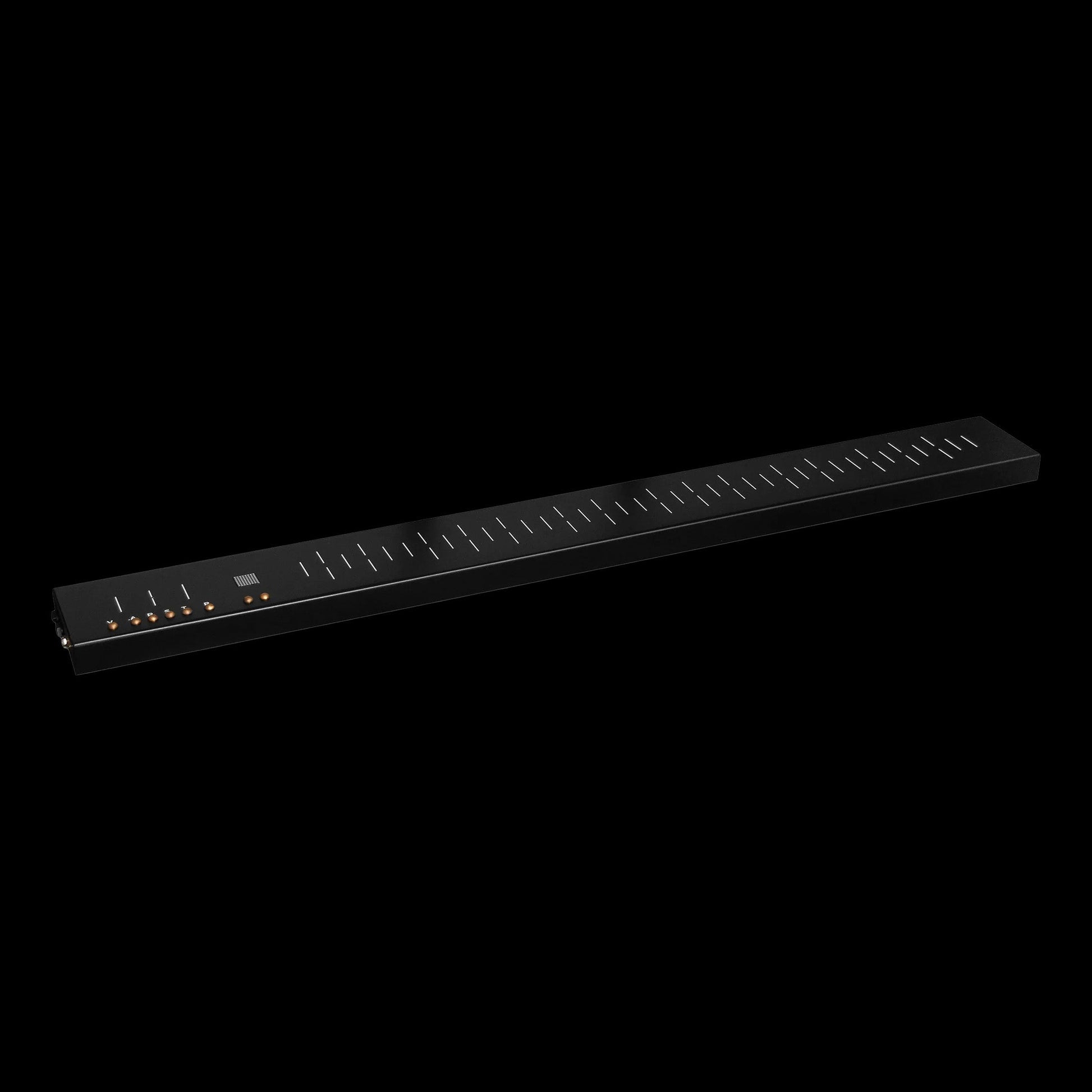 Despite the complex sound generation possible with Flux, the interface is remarkably minimal and intuitive. The keyboard section features clearly delineated and evenly spaced markers for notes in 12 -one, even-tempered tuning, with continuous pitch control so you can explore space between notes. Thanks to its minimal interface which can be entirely controlled through the magnetic sensors, Flux provides a reliable instrument for touring that sets up quickly. Built with premium audio converters, the sound of Flux is similarly professional, offering a high quality experience connecting to live and studio systems.