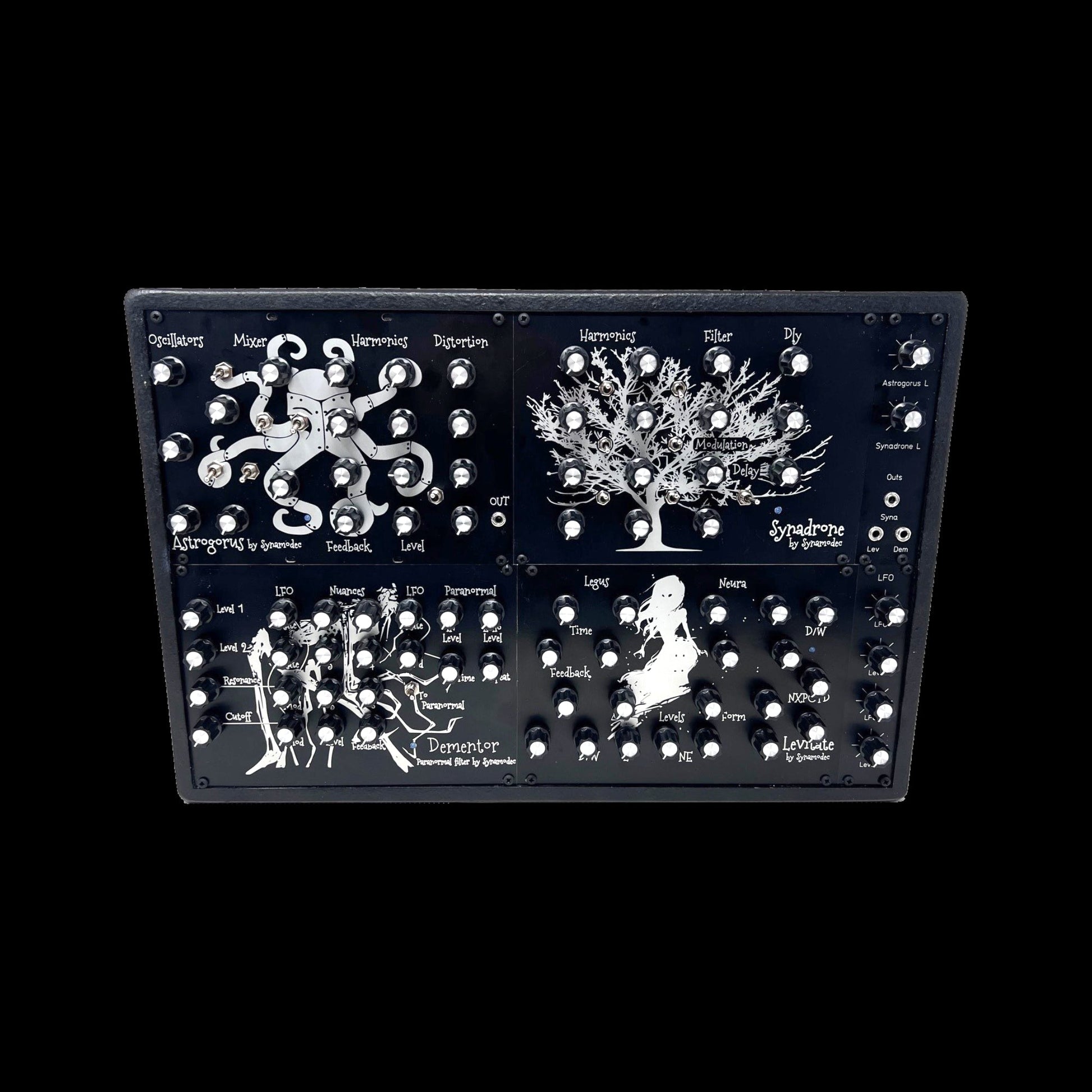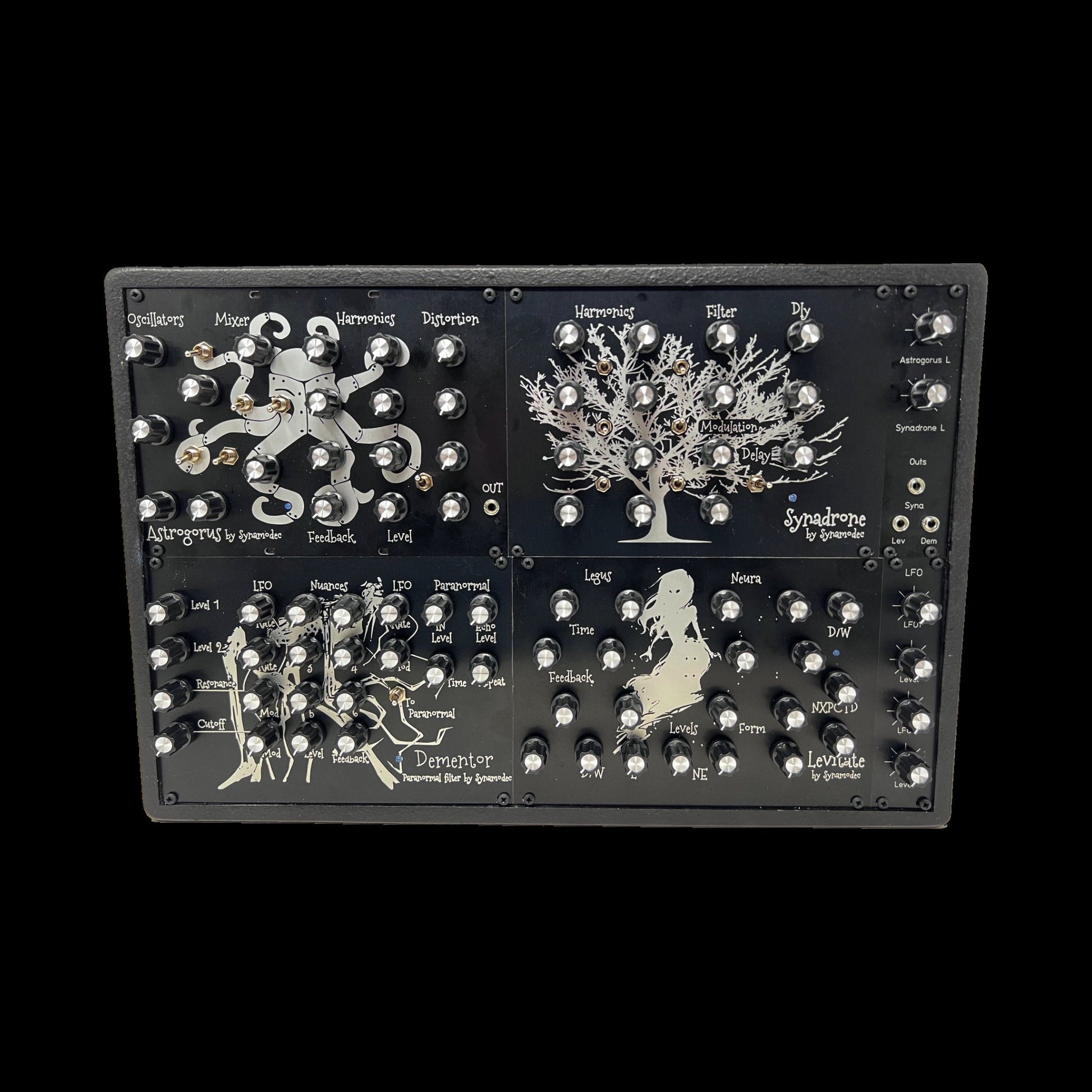 This synthesizer contains four Synamodec synthesizers in the same case,