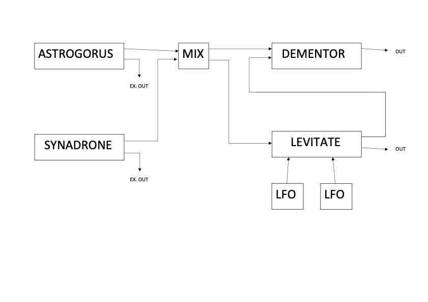Looking at the flow diagram of the synth you can see how they are connected to each other.