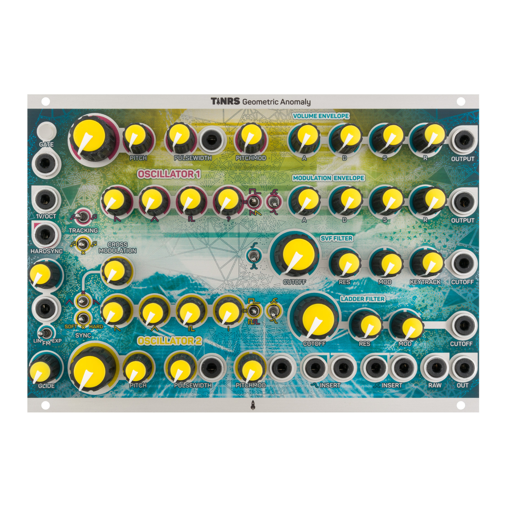 Born out of the legacy of their RectangularThing analog voice and infused with lessons learned in their expansive Fenix IV synthesizer, the Geometric Anomaly from TINRS is a comprehensive analog voice with unique cross modulation capabilities. As with much of the modular synth world, great things are always better in pairs, which is why the Geometric Anomaly comes equipped with two each of oscillators, filters, and ADSR envelopes to enable complex and powerful sound design. With a ton of CV ready patch points, audio breakout jacks, and unique wave switching feature, the Geometric Anomaly is well suited as the centerpiece of a monophonic system, covering all angles of synth techniques to traverse new topologies of timbral exploration.